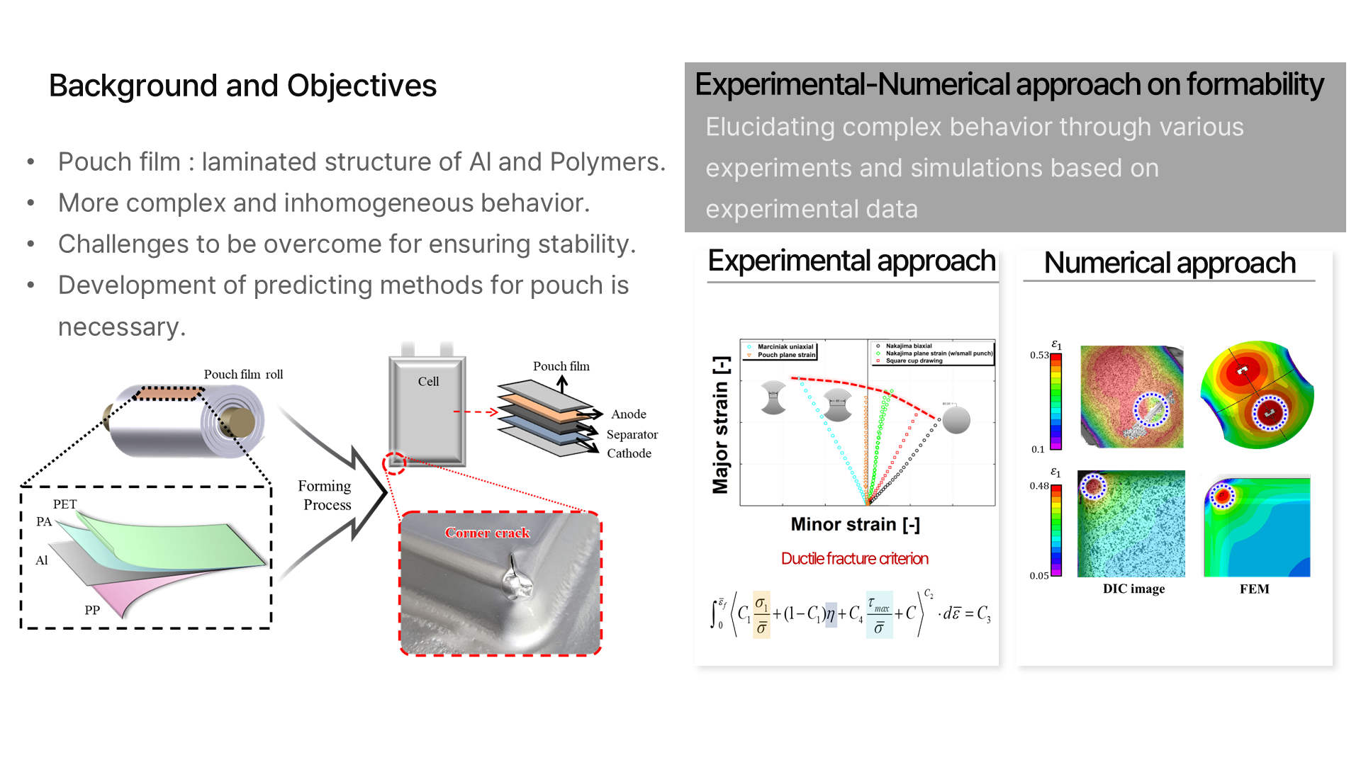 박중현A reliable failure prediction framework for aluminum-polymer laminated pouch films that integrates experimental ductile fracture criteria into finite element simulations to prevent manufacturing defects.
